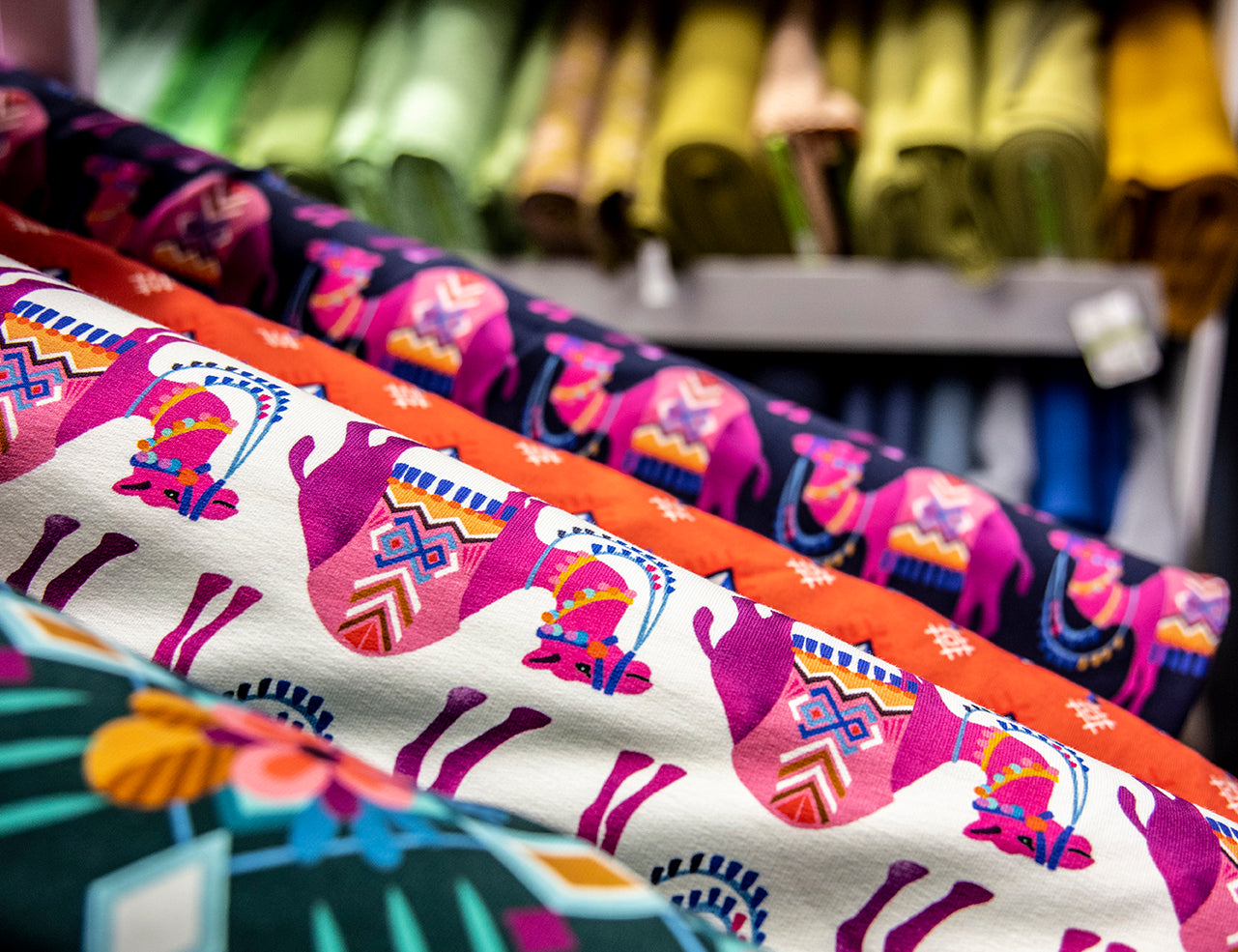 Die Firma unterhält ein großes Baumwoll-Farbgarnlager mit über 50 GOTS zertifizierten Farben. Dies ist die Basis für berühmten Albstoffe Jacquardjerseys in Bioqualität.